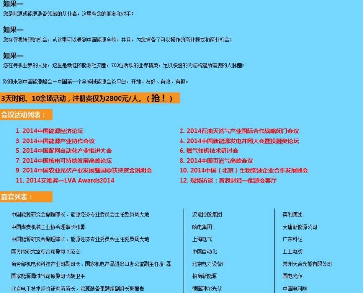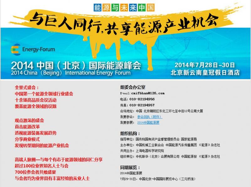 2014中國(北京)國際能源峰會將于7月28日-30日在北京新云南皇冠假日酒店召開