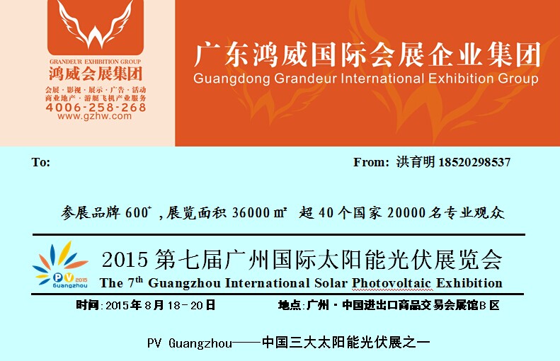 ![]() 中國(guó)機(jī)電產(chǎn)品進(jìn)出口商會(huì)太陽(yáng)能光伏產(chǎn)品分會(huì) 廣東省粵港澳經(jīng)貿(mào)合作促進(jìn)會(huì) 中國(guó)國(guó)際商會(huì)廣東商會(huì) 承辦單位: 廣東鴻威國(guó)際會(huì)展集團(tuán)有限公司 國(guó)際機(jī)構(gòu): American Council On Renewable Energy (ACORE) European PhotoVoltaic Industry Association (EPIA) Solar Electric Power Association (SEPA) Solar Energy Industries Association(SEIA) American Council On Renewable Energy(ACORE) Japanese Photovoltaic Energy Association(JPEA) Asian Photovoltaic Industry Association(APVIA) German Solar Industry Association Turkish Association of Photovoltaic Companies Canadian Solar Industry Association Renewable Energy Association(REA) Spanish PV Industry Association Italian PV Industry Association Australian PV Association (APVA) French Renewable Energy Union 國(guó)際媒體: Photovoltaics, PV Magazine, PV International, Energetica India, Solar Industry, Photon Magazine, Sun & Wind Energy, Global Solar Technology, Photovoltaics World, Shine Magazine, Green Energy Magazine, ECF-China Energy Forum, Asian Solar, Solar Industry, Recharge, Solarbuzz, Solar Energy, China Renewable Energy etc. 【中國(guó)將成全球光伏產(chǎn)業(yè)發(fā)展引擎】 中國(guó)是光伏制造大國(guó),是全球重要光伏銷售市場(chǎng),市場(chǎng)份額占全球的1/3,因此,我國(guó)光伏產(chǎn)業(yè)的成敗對(duì)全球新能源發(fā)展有重要的影響。2013年以來(lái),我國(guó)政府出臺(tái)一系列支持光伏產(chǎn)業(yè)健康可持續(xù)發(fā)展的政策和管理辦法,在光伏發(fā)電并網(wǎng)、補(bǔ)貼、金融等方面提供強(qiáng)力支持,形成了完整的光伏產(chǎn)業(yè)體系和巨大的銷售市場(chǎng),光伏電池產(chǎn)量占全球市場(chǎng)的60%,成為我國(guó)在國(guó)際上占主導(dǎo)市場(chǎng)的新型產(chǎn)業(yè),2013年全年新增裝機(jī)12.92吉瓦,新增市場(chǎng)份額占據(jù)了全球的1/3,預(yù)計(jì)2020年光伏發(fā)電裝機(jī)達(dá)到1億千瓦。為配合《國(guó)務(wù)院關(guān)于促進(jìn)光伏產(chǎn)業(yè)健康發(fā)展的若干意見》,拓展光伏產(chǎn)業(yè)銷售市場(chǎng),培養(yǎng)光伏品牌競(jìng)爭(zhēng)力,由廣東鴻威國(guó)際會(huì)展集團(tuán)有限公司主辦的“2015年第七屆廣州國(guó)際太陽(yáng)能光伏產(chǎn)展覽會(huì)”(PV Guangzhou)于2015年8月18-20日在廣州廣交會(huì)展館隆重舉辦!是國(guó)內(nèi)外品牌拓展中國(guó)市場(chǎng)的重要通道,是布局全球網(wǎng)絡(luò)的最佳渠道,是光伏行業(yè)年度新品發(fā)布重要平臺(tái)及貿(mào)易導(dǎo)向。 |