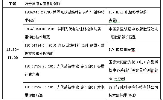 各有關(guān)單位: 近年來,在國家相關(guān)政策的引導和支持下,我國光伏發(fā)電市場呈現(xiàn)高速增長,自2013年開始,連續(xù)多年位居全球首位。但在市場高速增長的同時,也涌現(xiàn)出光伏電站設(shè)計、安裝、施工、運維等環(huán)節(jié)不符合有關(guān)標準規(guī)范等問題,導致電站質(zhì)量較差,發(fā)電量低于預期,嚴重的甚至導致人身財產(chǎn)安全事故。此外,IEC TC82國際電工委員會于2016年新修訂和發(fā)布了一系列光伏電站質(zhì)量評價技術(shù)標準。為普及光伏電站相關(guān)國際國內(nèi)標準,中國光伏行業(yè)協(xié)會擬于2017年3月24日在北京組織召開光伏電站標準培訓會,邀請檢測機構(gòu)、行業(yè)專家等對多項光伏電站涉及的國際國內(nèi)關(guān)鍵標準進行解讀。本次光伏電站標準培訓會是2017年中國光伏行業(yè)協(xié)會光伏標準系列培訓會的第一場,之后還會陸續(xù)推出針對光伏材料(6月)、光伏逆變器及部件(9月)等環(huán)節(jié)的多場標準培訓會。 一、會議組織機構(gòu) 主辦單位:中國光伏行業(yè)協(xié)會 承辦單位:國檢集團(CTC)、國家太陽能光伏(電)產(chǎn)品質(zhì)檢中心(CPTC)、TüV北德集團 贊助單位:蘇州諾威特測控科技有限公司、北京曙光新航科技有限公司、無錫環(huán)威科技有限公司 合作媒體:光伏們、PV-tech每日光伏新聞、《光伏產(chǎn)業(yè)觀察》雜志、光伏資訊PV-Info、中國電力報 二、會議時間地點 。ㄒ唬⿻h地點:北京市海淀區(qū)萬壽賓館A座 。ǘ⿻h時間:2017年3月24日(星期五)9:00—17:00 三、參會人員 行業(yè)主管部門、科研院所、檢測認證機構(gòu)、光伏企業(yè)等。 四、參會要求 (一)參會回執(zhí) 請各單位于2017年3月10日前提交書面回執(zhí)。 聯(lián)系人:李孟蕾 13381283391lml@ctc.ac.cn 卜聰 13381283271 bucong@ctc.ac.cn 。ǘ﹨M用 本次會議會務(wù)組織工作由CTC承擔。中國光伏行業(yè)協(xié)會會員每單位可享受1人免費名額,超出人數(shù)按1000元/人繳納。由于場地空間有限,參會名額先到先得,滿額為止。非會員單位1000元/人。費用包括會議費、資料費、自助午餐費。請于會前通過銀行轉(zhuǎn)賬方式匯款至指定賬戶,并于會議當天簽到時向工作人員索取發(fā)票(發(fā)票內(nèi)容為會議費)。現(xiàn)場繳費只收取現(xiàn)金。銀行開戶信息如下: 賬戶名:中國建材檢驗認證集團股份有限公司 賬號:0200006809014437256 開戶行:工行北京管莊支行 參會人員交通及住宿費自理,如需預定房間可與酒店方聯(lián)系。萬壽賓館聯(lián)系方式:010-68132266轉(zhuǎn)6666,報中國光伏行業(yè)協(xié)會可享受協(xié)議價。