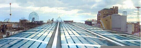 康尼島位于紐約的最南端,有大型的游樂(lè)場(chǎng)和優(yōu)美的海岸線(xiàn),是紐約人的度假勝地。紐約康尼島Stillwell大街地鐵站的屋頂BIPV工程,是美國(guó)最大的應(yīng)用在公共交通系統(tǒng)上的BIPV工程,也是康尼島維修與重建項(xiàng)目的一個(gè)重要組成部分,展現(xiàn)了康尼島的活力與魔力,和紐約市政府對(duì)環(huán)境保護(hù)的重視。