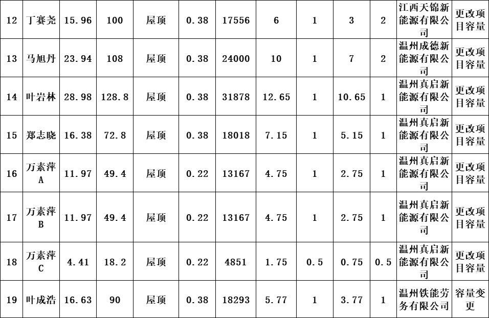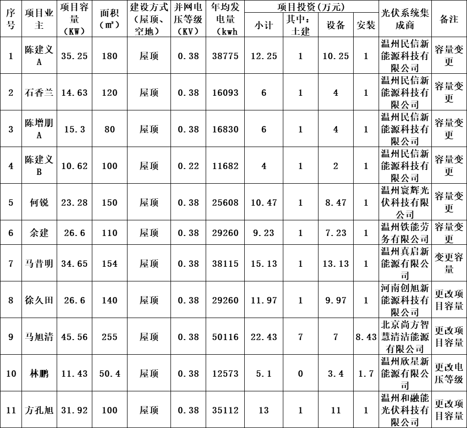 4月15日,浙江樂清市發(fā)改局發(fā)布關(guān)于樂清市2025年第六批居民家庭屋頂分布式光伏發(fā)電項(xiàng)目備案的通知。本批次共有居民家庭屋頂分布式光伏發(fā)電項(xiàng)目(變更)34個(gè),總裝機(jī)容量803.4kWp,年平均發(fā)電量879893kWh。 通知明確,備案通知書有效期一年,自備案之日起計(jì);有效期內(nèi)未開工建設(shè)的,應(yīng)在備案通知書有效期滿30日前申請延期。逾期不報(bào),備案通知書自動失效。 已備案項(xiàng)目發(fā)生變更的,應(yīng)辦理相應(yīng)的變更手續(xù)。 居民家庭屋頂分布式光伏發(fā)電項(xiàng)目屬自然人項(xiàng)目,我局委托貴公司組織驗(yàn)收。 本備案通知書不可作為項(xiàng)目所依托的建筑物符合城鄉(xiāng)、土地等相關(guān)規(guī)劃的認(rèn)定依據(jù)。 名單如下: ![]() ![]() ![]() |