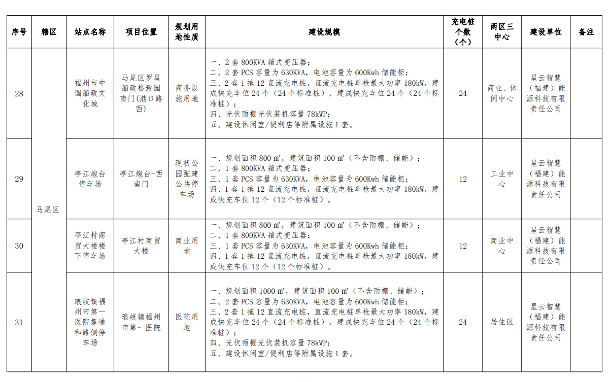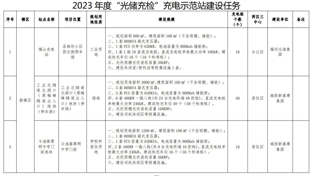 近日,福州發(fā)改委印發(fā)《關(guān)于進(jìn)一步構(gòu)建高質(zhì)量充電基礎(chǔ)設(shè)施體系的實(shí)施意見(jiàn)(征求意見(jiàn)稿)》,部署了2023年度“光儲(chǔ)充檢”充電示范站建設(shè)任務(wù),到2025年,全市建成“光儲(chǔ)充檢”智能充電站100座。 意見(jiàn)稿提出,助力新能源產(chǎn)業(yè)發(fā)展。發(fā)揮產(chǎn)品、技術(shù)、平臺(tái)、人才等方面的優(yōu)勢(shì),在鋰電池檢測(cè)、分布式儲(chǔ)能應(yīng)用、光伏組件、直流快充、智慧能源網(wǎng)絡(luò)等領(lǐng)域,集新能源儲(chǔ)能裝備制造、重要零部件制造、集成系統(tǒng)研發(fā)、服務(wù)運(yùn)維等產(chǎn)業(yè),通過(guò)“光儲(chǔ)充檢”一體化充電站、工商業(yè)儲(chǔ)能、大型電力儲(chǔ)能等全領(lǐng)域解決方案,助力福州儲(chǔ)能、快充設(shè)備、電池檢測(cè)等新能源產(chǎn)業(yè)集群發(fā)展。 意見(jiàn)稿提出,完善支持政策。落實(shí)峰谷分時(shí)電價(jià)政策,引導(dǎo)用戶廣泛參與智能有序充電和車(chē)網(wǎng)互動(dòng)。2030 年前,對(duì)實(shí)行兩部制電價(jià)的集中式充換電設(shè)施用電免收需量(容量)電費(fèi)。鼓勵(lì)各縣(市)區(qū)政府對(duì)充電基礎(chǔ)設(shè)施場(chǎng)地征用地價(jià)優(yōu)惠和租金階段性減免。鼓勵(lì)電網(wǎng)企業(yè)在電網(wǎng)接入、增容等方面優(yōu)先服務(wù)充電基礎(chǔ)設(shè)施建設(shè)。 2023年度“光儲(chǔ)充檢”充電示范站建設(shè)任務(wù)如下: ![]() ![]() ![]() ![]() ![]() ![]() ![]() ![]() ![]() |
