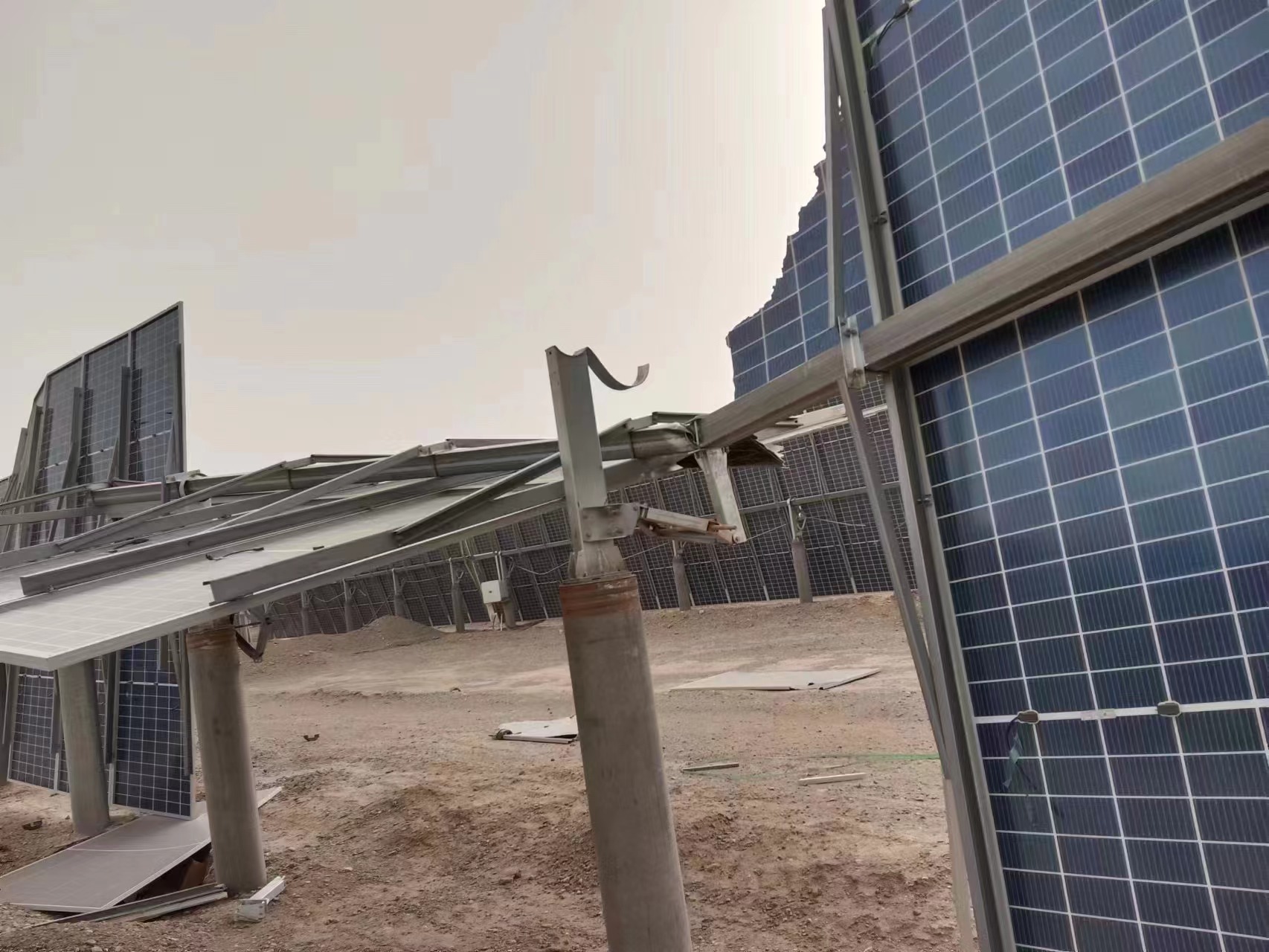 11月27日,新疆庫(kù)車遭遇13級(jí)特大暴風(fēng)沙塵暴,位于庫(kù)車境內(nèi)正在建設(shè)中的某光伏制氫項(xiàng)目有超過(guò)200MW的光伏組件陣列因此發(fā)生大面積倒塌,損失慘重。 資料顯示,新疆庫(kù)車光伏制氫項(xiàng)目是目前全球范圍內(nèi)在建的最大光伏制氫項(xiàng)目,同時(shí)也是中國(guó)首個(gè)萬(wàn)噸級(jí)光伏制氫示范項(xiàng)目,項(xiàng)目總投資近30億元,主要包括光伏電站、輸變電、電解水制氫、儲(chǔ)氫、輸氫等,其中光伏發(fā)電總裝機(jī)達(dá)1000MW。 遭遇此次特大風(fēng)暴的光伏電站屬于上述項(xiàng)目的一期工程,設(shè)計(jì)光伏裝機(jī)300MW,計(jì)劃于10月30日建成并網(wǎng)。 ![]() 事故發(fā)生后,有媒體認(rèn)為,此次沙塵暴之所以能造成如此重大的損失,除了極端天氣原因外,該項(xiàng)目光伏組件陣列采用的手動(dòng)可調(diào)支架是最大的“罪魁禍?zhǔn)住保⒎Q手動(dòng)可調(diào)支架組成的組件陣列阻風(fēng)面積大,在逆風(fēng)狀態(tài)下組件背面受到極大正壓力,遭遇大風(fēng)必然會(huì)出問(wèn)題,因此不適用于高緯度特大風(fēng)壓地區(qū)。 這一說(shuō)法在光伏支架行業(yè)內(nèi)引起了不小的反響和爭(zhēng)議。為此,太陽(yáng)能發(fā)電網(wǎng)記者致電無(wú)錫昊陽(yáng)新能源科技有限公司董事長(zhǎng)張海平。作為國(guó)內(nèi)季節(jié)性可調(diào)支架技術(shù)的發(fā)明者和引領(lǐng)者,無(wú)錫昊陽(yáng)新能源從事跟蹤支架行業(yè)長(zhǎng)達(dá)十多年,曾獲得多項(xiàng)發(fā)明專利和實(shí)用新型專利,其中可調(diào)支架累計(jì)出貨已超過(guò)3GW。 張海平告訴記者,新疆庫(kù)車光伏制氫項(xiàng)目事故后的這些天,他每天都會(huì)接到許多電話,一是詢問(wèn)項(xiàng)目是否采用了無(wú)錫昊陽(yáng)的手動(dòng)可調(diào)支架設(shè)備,二是咨詢可調(diào)支架的安裝風(fēng)險(xiǎn)和技術(shù)問(wèn)題。 “新疆庫(kù)車光伏制氫項(xiàng)目沒(méi)有用我們的技術(shù)和設(shè)備。根據(jù)我們了解,該項(xiàng)目采用的手動(dòng)可調(diào)支架設(shè)計(jì)方案是對(duì)我們可調(diào)支架技術(shù)的簡(jiǎn)單模仿,未能掌握到我們?cè)O(shè)計(jì)的精髓,且沒(méi)有在大風(fēng)地區(qū)應(yīng)用手動(dòng)可調(diào)支架的經(jīng)驗(yàn),可能是造成事故損失較大的重要原因之一!