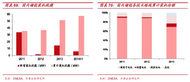 儲能技術種類較多,主要分為物理儲能(抽水儲能、 壓縮空氣儲能、飛輪儲能)、化學儲能(鉛酸電池、鋰離子電池、液流電池、鎳氫電池)、其他儲能(電化學電容器、超導儲能、燃料電池、金屬-空氣電池)等。 化學儲能綜合優(yōu)勢明顯:化學儲能具有建設周期短、運營成本低、對環(huán)境影響低、不受地理條件限制的優(yōu)點,適用于電網(wǎng)大規(guī)模儲能應用,因此逐漸成為儲能的首選方案。 對電網(wǎng)儲能應用,鉛酸、液流(全釩和鈉硫電池)也是兩種主要的已經(jīng)被市場認可的商用技術。 鉛炭電池:是鉛酸電池的未來發(fā)展方向:鉛炭電池比普通鉛酸電池的價格高,但是循環(huán)壽命大幅度提升,性價比高;可廣泛應用于各種新能源和節(jié)能領域。而鉛炭電池同鋰離子電池相比,比鋰離子電池更經(jīng)濟,作為鎳氫和鋰離子電池在微型、輕度混合動力車領域低成本的替代。而目前國內(nèi)鉛炭電池研發(fā)技術已達國際領先水平,南都電源的鉛炭電池產(chǎn)品在測試中的性能遠高于國外標準,并且已經(jīng)應用于商業(yè)中。 鈉硫電池:具有能量密度高、功率特性好、循環(huán)壽命長等優(yōu)勢。日本在鈉硫電池技術方面遙遙領先于其他國家和地區(qū),NGK 是當前全球范圍內(nèi)唯一能提供鈉硫電池工業(yè)化產(chǎn)品的廠商。近來中國正積極開展鈉硫電池的研發(fā)和產(chǎn)業(yè)化探索工作,目前上海硅酸鹽研究所已推出單體電池原型產(chǎn)品。 儲能大規(guī)模產(chǎn)業(yè)化在即啟動潛在數(shù)百億市場 與光伏、風電的產(chǎn)業(yè)化路徑類似,政策激勵拉動需求爆發(fā),資本進入推動技術進步、成本下降,從而促進更大規(guī)模的應用。目前全球儲能處于產(chǎn)業(yè)化初期,未來市場空間巨大。 儲能環(huán)節(jié)是能源互聯(lián)網(wǎng)關鍵節(jié)點 能源互聯(lián)網(wǎng)是智能電網(wǎng)的升級版,在現(xiàn)有電網(wǎng)基礎上通過先進的電力電子技術和信息技術,融合了以儲能、分布式電源、電動車為代表的大量新型發(fā)電用電環(huán)節(jié),實現(xiàn)能量和信息的互聯(lián)與雙向流動。 能源互聯(lián)網(wǎng)的特點是市場化、民主化、去中心化、智能化、物聯(lián)化,任何能源主體都能夠自由的交換和共享,能源交易從傳統(tǒng)的 B2B、B2C 擴充至 C2B、C2C。 儲能產(chǎn)業(yè)的組織或機構(官方或非官方)正在逐步形成,在一定程度上也將加快儲能政策的出臺,助推儲能產(chǎn)業(yè)加快走向成熟。同時我們也觀察到越來越多的企業(yè)積極試水儲能產(chǎn)業(yè),也將助推國內(nèi)儲能產(chǎn)業(yè)的爆發(fā)。 |
