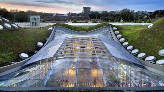 加州科學(xué)院的微型生態(tài)圈 在該手冊收錄的BIPV經(jīng)典案例中,筆者最喜歡的建筑則是曾獲得普利茲克獎的建筑師RENZO的作品——加州科學(xué)院,該建筑位于舊金山金門公園的加州科學(xué)院。 ![]() 普利茲克獎設(shè)計師RENZO 加州科學(xué)院是舊金山市首個生態(tài)型建筑,由自然科史博物館、摩里生天文館和史坦哈特水族館三館組成。設(shè)計理念是在基地上豎起一處天然景觀,里面有各種設(shè)施、辦公樓與展覽空間。高處是默里生天文館和熱帶雨林展覽廳,低處則有一個中央廣場。廣場明亮閃耀、空氣清新怡人,大部分為草地,就像是一個微型生態(tài)圈。 ![]() 加州科學(xué)院遠景 設(shè)計師在設(shè)計該項目時,采用了大量的生態(tài)節(jié)能手段。比如重新灌溉河床與廢水回收處理等可持續(xù)技術(shù),并盡量減少地面建筑面積與道路面積。![]() 加州科學(xué)院屋頂 加州科學(xué)院的屋頂邊緣,則采用了SunPower的高效太陽能電池,60000塊高性能的太陽能電池被封裝在720塊定制的玻璃面板內(nèi)。這種獨特的顯示,使得游客可以看到頂部和底部的太陽能電池。該屋頂BIPV裝機容量為172KW,可為科學(xué)院提供10%的電力需求,每年減少碳排放405000磅。而屋頂?shù)闹虚g,除了用來盡可能采光的玻璃以外,全部種上了植物,使得整個屋頂成為一個原生花卉花園。 ![]() 加州科學(xué)院屋頂邊緣的透明BIPV面板