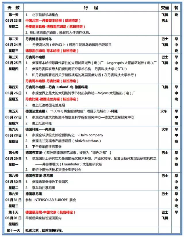 Either body or soul must be on the way!光伏專委會2017年歐洲(德·丹)技術(shù)交流活動報(bào)名正在有條不紊地進(jìn)行中,今天就由小編為大家提前劃重點(diǎn),細(xì)數(shù)本次為期10天、歷經(jīng)兩個(gè)國家、7個(gè)城市的路線中,有哪些值得一看的關(guān)鍵技術(shù)指標(biāo)吧。剀疤崾荆喝粘碳皥(bào)名方式見文末,由于席位有限,報(bào)名