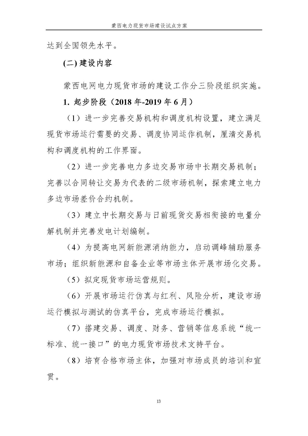 按照國家發(fā)改委、能源局印發(fā)《關(guān)于開展電力現(xiàn)貨市場建設(shè)試點(diǎn)工作的通知》(發(fā)改辦能源[2017]1453號)文件要求,蒙西地區(qū)被確定為現(xiàn)貨市場建設(shè)試點(diǎn)單位。為貫徹落實國家電力體制改革精神,適應(yīng)市場發(fā)展需要,內(nèi)蒙古電力多邊市場全面啟動電力現(xiàn)貨市場試點(diǎn)建設(shè)工作,目前已經(jīng)形成《蒙西電力現(xiàn)貨市場建設(shè)試點(diǎn)方案(征求意見稿)