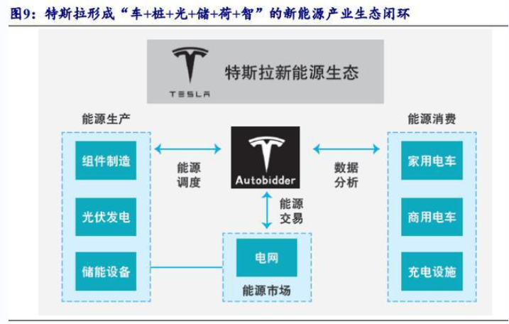 憑借高超的資源聚合能力和多元商業(yè)模式,Next Kraftwerke營業(yè)收入實(shí)現(xiàn)較快增長。 截至2018年,NextKraftwerke管理了超過6854個(gè)客戶資產(chǎn),包括生物質(zhì)發(fā)電裝置、熱電聯(lián)產(chǎn)、水電站、靈活可控負(fù)荷、風(fēng)能和太陽能光伏電站等,容量超5987MW。NextKraftwerke管理的單個(gè)客戶資源平均只有0.87MW,單個(gè)資源規(guī)模偏小且零散,調(diào)度和交易難度大、成本高,很難通過市場交易獲利。NextKraftwerke公司通過其高超的資源聚合能力和創(chuàng)新的商業(yè)模式,營業(yè)收入保持較快增速。 ![]() 2.2、Autobidder:特斯拉新能源產(chǎn)業(yè)生態(tài)的樞紐 特斯拉形成“車+樁+光+儲+荷+智”的新能源產(chǎn)業(yè)生態(tài)閉環(huán)。根據(jù)《特斯拉新能源生態(tài)閉環(huán)》總結(jié),特斯拉在電動汽車業(yè)務(wù)取得突破后,不斷進(jìn)軍儲能、發(fā)電、虛擬電廠等新能源領(lǐng)域,初步構(gòu)建起“車+樁+光+儲+荷+智”的新能源閉環(huán)生態(tài)。 (1)“車+樁”組成特斯拉新能源生態(tài)體系的用能端,通過對車型布局、電池系統(tǒng)、充電網(wǎng)絡(luò)和充電技術(shù)的持續(xù)迭代優(yōu)化,特斯拉電動汽車和充電設(shè)備等產(chǎn)品受到市場廣泛認(rèn)可。 (2)“光+儲”組成特斯拉新能源生態(tài)體系的產(chǎn)能端,在“車+樁”的用能端率先取得突破的基礎(chǔ)上,特斯拉開始進(jìn)軍儲能項(xiàng)目開發(fā)、光伏和儲能設(shè)備制造、光伏發(fā)電運(yùn)營等領(lǐng)域,形成在產(chǎn)能端的光儲協(xié)同布局。 (3)“荷+智”組成特斯拉新能源生態(tài)體系的交易端,虛擬電廠智能平臺Autobidder實(shí)現(xiàn)了在交易端與公用電網(wǎng)的連接,成為特斯拉構(gòu)建新能源生態(tài)體系的基本依托。 ![]() ![]() Autobidder是系統(tǒng)+平臺+算法庫。 根據(jù)吳建軍等發(fā)表的《智慧能源管理平臺支撐需求側(cè)變革》一文,Autobidder不僅僅是電力交易的數(shù)字化軟件,特斯拉還賦予它分布式能源交易管理系統(tǒng)、虛擬電廠交易和控制平臺,以及開源復(fù)雜算法庫等更多涵義。 ![]() Autobidder是虛擬電廠實(shí)時(shí)交易和控制平臺。Autobidder可以在車輛、電池、光伏設(shè)備等特斯拉生態(tài)系統(tǒng)、甚至電網(wǎng)中自動調(diào)度能源電力,以實(shí)現(xiàn)高效的資源分配和最大的商業(yè)效益。 |