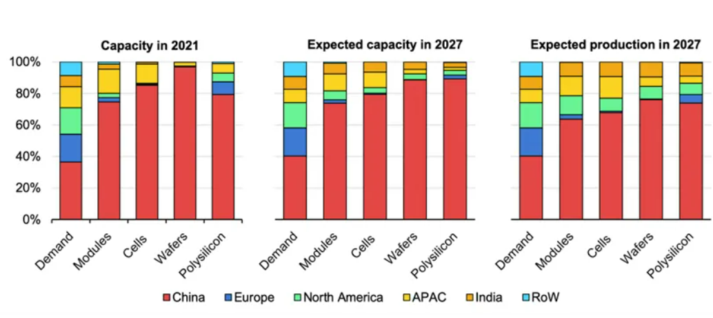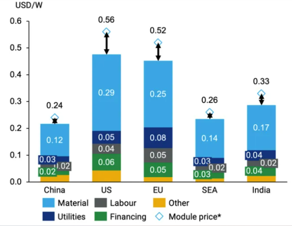 海外市場:至關(guān)重要、更加復(fù)雜當(dāng)前,中國企業(yè)在光伏行業(yè)的各個環(huán)節(jié)都絕對領(lǐng)先,中國光伏企業(yè)的技術(shù)和產(chǎn)能優(yōu)勢,支撐了全球的能源轉(zhuǎn)型。 根據(jù)光伏行業(yè)協(xié)會的數(shù)據(jù),2022年,中國光伏企業(yè)在多晶硅料、硅片、電池片、組件這四個主要環(huán)節(jié)的產(chǎn)能在全球占比都超過了80%,產(chǎn)量占比都超過85%。其中硅片尤為突出,中國產(chǎn)能、產(chǎn)量占比都超過97%。 2022年全球光伏產(chǎn)品產(chǎn)能 產(chǎn)量及中國產(chǎn)品在全球的占比 ![]() 根據(jù)光伏行業(yè)協(xié)會的數(shù)據(jù),2022年,中國光伏產(chǎn)品出口依然強勁增長,總出口額512.5億美元,同比增長80.3%,其中組件產(chǎn)品出口是大頭,占比82.6%,出口量達到153.6GW。與之相比,2022年中國新增光伏裝機為87.41GW(對應(yīng)組件需求約104.5GW),國際市場需求是國內(nèi)市場需求的1.47倍。 國際市場廣闊的增長空間,中國光伏企業(yè)的技術(shù)、產(chǎn)能和成本優(yōu)勢,都對消化當(dāng)前正在擴張的產(chǎn)能有重要作用。而國際市場一旦受到抑制,就會加重國內(nèi)企業(yè)的過剩形勢。 出口區(qū)域方面,深陷能源危機而加速能源轉(zhuǎn)型的歐洲是第一大市場,2022年占中國光伏產(chǎn)品出口總額的46%,同比大增114.9%,其中出口歐洲的轉(zhuǎn)運國荷蘭是第一大出口目的地。 美國方面,為了規(guī)避關(guān)稅壁壘,頭部組件廠商紛紛在東南亞國家設(shè)廠,從國內(nèi)進口硅片、電池在東南亞生產(chǎn)組件再出口至美國,這也帶動了硅片、電池這類上游產(chǎn)品出口增速,尤其是電池出口同比大增130.7%。據(jù)光伏行業(yè)協(xié)會數(shù)據(jù),今年上半年,這一趨勢仍在延續(xù),硅片、電池片的出口占比有所增加,且主要出口至東南亞國家。東南亞國家也迅速成為美國進口光伏組件的主要來源國,而這背后主要是中國光伏企業(yè)在東南亞的產(chǎn)能。 ![]() 這一變化的背后,是中國光伏企業(yè)面臨著更加復(fù)雜的出口形勢。 俄烏戰(zhàn)爭深刻改變了全球能源格局,能源轉(zhuǎn)型提速,能源安全更受重視。過去歐洲依賴俄羅斯的油氣資源,而在能源轉(zhuǎn)型提速之后,中國在光伏和新能源車產(chǎn)業(yè)鏈的主導(dǎo)地位變得更加矚目。 歐洲、美國、印度是全球最重要的幾大市場,如今都在不斷對中國出口光伏產(chǎn)品設(shè)置貿(mào)易壁壘,并努力打造自己的光伏產(chǎn)業(yè)鏈。這些壁壘和本地化的努力,未來將對中國光伏產(chǎn)品出口前景帶來影響。 2022年部分經(jīng)濟體實施的貿(mào)易壁壘政策 涉及美國、歐盟、印度等海外市場 ![]() 國際能源署在2022年7月發(fā)布的《光伏全球產(chǎn)業(yè)鏈報告》中認(rèn)為,光伏供應(yīng)鏈集中帶來脆弱性,給能源轉(zhuǎn)型帶來潛在挑戰(zhàn)。迄今為止,在全球范圍內(nèi),支持光伏發(fā)電的政策主要集中在增加需求和降低成本上。然而,還需要有彈性和可持續(xù)的供應(yīng)鏈,以確保在全球范圍內(nèi)及時、經(jīng)濟高效地交付太陽能電池板。因此,各國政府需要將注意力轉(zhuǎn)向確保太陽能光伏供應(yīng)的安全,將其作為清潔能源轉(zhuǎn)型的一個組成部分。各國應(yīng)評估其國內(nèi)太陽能光伏供應(yīng)鏈的脆弱性和風(fēng)險,并制定應(yīng)對策略和行動。 美國《通脹削減法案》(IRA)正在努力構(gòu)建國內(nèi)的光伏產(chǎn)業(yè)鏈。2022年8月,美國總統(tǒng)拜登簽署《IRA》,根據(jù)該法案,未來10年,美國將投入3690億美元用于能源安全和氣候變化。其中在光伏制造端,IRA 對光伏全產(chǎn)業(yè)鏈都有補貼,至2029年,IRA對對組件補貼7美分/瓦,電池4美分/瓦,硅片12美元/平方米,多晶硅料3美元/公斤。 IRA對光伏制造端的補貼明細(xì) ![]() 據(jù)美國太陽能行業(yè)協(xié)會(SEIA)和伍德麥肯茲(Wood Mackenzie)在2023年6月聯(lián)合發(fā)布的《二季度美國太陽能市場洞察》報告,由于美國后續(xù)政策要求不僅組件需要本地化生產(chǎn),也對上游原材料提出本地化要求,而當(dāng)前美國并沒有電池片產(chǎn)能,預(yù)計這會催生電池領(lǐng)域的投資,進一步促進光伏供應(yīng)鏈的本地化,預(yù)計到2026年,美國本土電池片產(chǎn)能將增長到20GW,本土組件產(chǎn)能達到60GW。 美國電池、組件產(chǎn)能增長預(yù)測 ![]() 印度是中國和美國之外唯一的10GW級光伏市場。印度光伏組件80%以上從中國進口。為了擺脫現(xiàn)狀,印度政府出臺一系列支持政策,既包括設(shè)立貿(mào)易保護政策,也制定了對本土光伏制造業(yè)的補貼政策。 印度政府2021年4月發(fā)布生產(chǎn)制造激勵(PLI)計劃,計劃在五年內(nèi)投入450億盧比,支持建立10GW的光伏綜合制造廠。2022年9月,印度把PLI計劃的投資額從450億盧比增至2400億盧比,大力推動光伏產(chǎn)品本土化生產(chǎn)。 歐盟委員會提出的《凈零工業(yè)法案》提出,對光伏產(chǎn)業(yè)將“推動投資、刺激需求、促進制造業(yè)和項目的許可、以及提升和再培訓(xùn)歐洲勞動力”。 復(fù)雜的地緣政治形勢下,補貼大戰(zhàn)已經(jīng)開啟,國際光伏市場將不再是單純的經(jīng)濟競爭。據(jù)彭博新能源財經(jīng)測算,《IRA》對光伏每個環(huán)節(jié)的稅收抵免疊加之后,理論上從多晶硅到組件的整個生產(ch