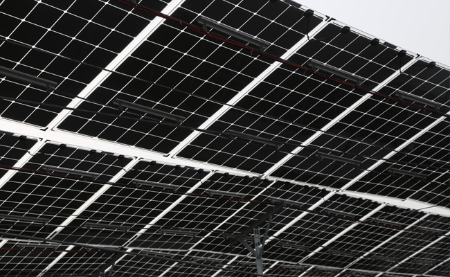 參選理由 本項(xiàng)目采用285Wp組件,電池全部采用單晶PERC技術(shù),共計(jì)安裝1078塊,其中雙玻組件550塊,常規(guī)組件528塊。支架采用魚(yú)腹式結(jié)構(gòu),按照水池長(zhǎng)跨方向布置14排,其中單玻組串24串、雙玻組串25串,分別連接6臺(tái)組串式逆變器后由2臺(tái)交流匯流箱進(jìn)行匯流,通過(guò)低壓并網(wǎng)柜接入廠區(qū)低壓側(cè),與用戶站380V系統(tǒng)相連。裝機(jī)容量307.23kWp,預(yù)計(jì)年均發(fā)電量34.1萬(wàn)kWh,每年可節(jié)約標(biāo)準(zhǔn)煤136.4噸,節(jié)能減排效果顯著。