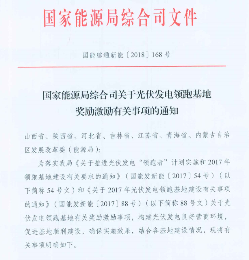 近日,國(guó)家能源局綜合司發(fā)布《關(guān)于光伏發(fā)電領(lǐng)跑基地獎(jiǎng)勵(lì)激勵(lì)有關(guān)事項(xiàng)的通知》,對(duì)2017年光伏發(fā)電基地給予3個(gè)共150萬(wàn)千瓦等量規(guī)模連續(xù)建設(shè)作為獎(jiǎng)勵(lì)激勵(lì)。獲得獎(jiǎng)勵(lì)的基地可以按照要求繼續(xù)申報(bào)后續(xù)領(lǐng)跑基地,但不予加分優(yōu)先考慮。獎(jiǎng)勵(lì)規(guī)模由相關(guān)基地自愿申報(bào)。相關(guān)材料于2019年1月底前向國(guó)家能源局報(bào)送推薦材料。