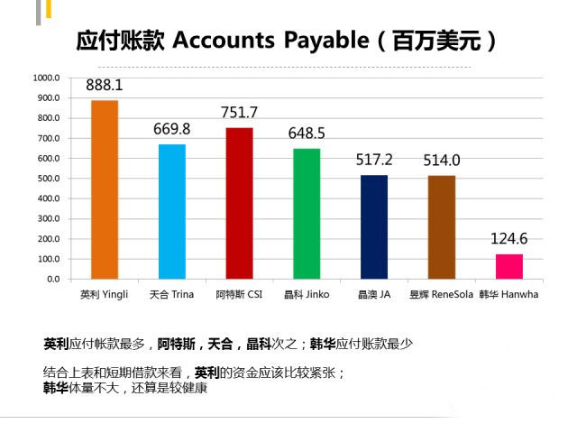 本報(bào)告選取英利、天合、阿特斯、晶科、晶澳、昱輝、韓華七家國(guó)內(nèi)大型光伏企業(yè)為對(duì)象,對(duì)它們?cè)?014年三季度財(cái)務(wù)報(bào)表進(jìn)行部分?jǐn)?shù)據(jù)羅列與對(duì)比。