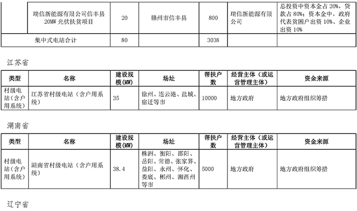 為貫徹落實(shí)中共中央國(guó)務(wù)院關(guān)于打贏脫貧攻堅(jiān)戰(zhàn)的決定和中央扶貧工作會(huì)議精神,加快推進(jìn)光伏扶貧工程建設(shè),我們組織各地區(qū)編制了光伏扶貧實(shí)施方案。經(jīng)對(duì)各地區(qū)報(bào)送實(shí)施方案中各項(xiàng)目的基本條件進(jìn)行審核,現(xiàn)將近期具備建設(shè)條件的第一批項(xiàng)目予以下達(dá),并將有關(guān)要求通知如下......