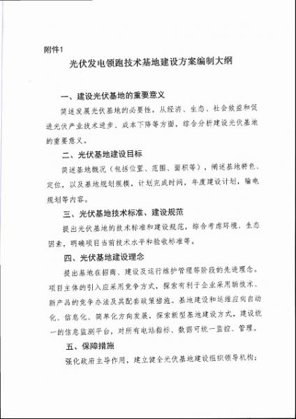按照國家發(fā)展改革委、能源局《關(guān)于完善光伏發(fā)電規(guī)模管理和實行競爭方式配置項目的指導(dǎo)意見》(發(fā)改能源〔2016〕1163號)要求,為科學(xué)配置資源,有效促進光伏產(chǎn)業(yè)技術(shù)進步和成本下降,現(xiàn)就做好2017年光伏發(fā)電領(lǐng)跑技術(shù)基地(以下簡稱光伏基地)和先進示范項目(以下簡稱示范項目)實施方案編制工作有關(guān)事項通知如下......