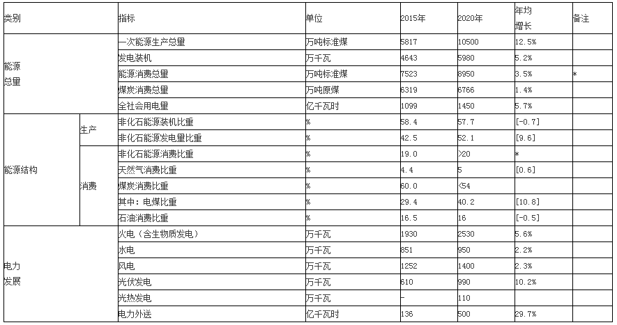第二章 指導(dǎo)思想與發(fā)展目標(biāo) 一、指導(dǎo)思想 全面貫徹黨的十八大和十八屆三中、四中、五中、六中全會(huì)精神,深入學(xué)習(xí)貫徹習(xí)近平總書記系列重要講話精神和治國(guó)理政新理念新思想新戰(zhàn)略,認(rèn)真落實(shí)習(xí)近平總書記視察甘肅重要講話和“八個(gè)著力”重要指示精神,統(tǒng)籌推進(jìn)“五位一體”總體布局和協(xié)調(diào)推進(jìn)“四個(gè)全面”戰(zhàn)略布局,遵循能源發(fā)展“四個(gè)革命、一個(gè)合作”的戰(zhàn)略思想,堅(jiān)持綠色低碳、安全高效的發(fā)展方針,圍繞我省穩(wěn)增煤炭產(chǎn)量、穩(wěn)增油氣產(chǎn)能、穩(wěn)增風(fēng)光裝機(jī)、強(qiáng)化能源消納轉(zhuǎn)化和煤炭清潔高效利用、加大電力外送的能源發(fā)展思路,大力發(fā)展清潔能源,擴(kuò)大能源輸轉(zhuǎn)、儲(chǔ)備能力,轉(zhuǎn)變能源發(fā)展方式,調(diào)整優(yōu)化能源結(jié)構(gòu),促進(jìn)能源產(chǎn)業(yè)升級(jí),培育能源消費(fèi)新模式,著力提升能源資源綜合利用水平,合理控制能源消費(fèi)增長(zhǎng),為與全國(guó)一道全面建成小康社會(huì)、建設(shè)幸福美好新甘肅提供有力的能源保障。 二、基本原則 (一)堅(jiān)持創(chuàng)新發(fā)展。加強(qiáng)能源科技創(chuàng)新,突出新能源領(lǐng)域和煤炭清潔化利用先進(jìn)成熟技術(shù)示范及推廣應(yīng)用,鼓勵(lì)支持大型能源企業(yè)設(shè)立研發(fā)機(jī)構(gòu),加快體制機(jī)制創(chuàng)新,發(fā)揮創(chuàng)新引領(lǐng)作用。 。ǘ﹫(jiān)持協(xié)調(diào)發(fā)展。加強(qiáng)能源系統(tǒng)協(xié)調(diào),優(yōu)化開發(fā)布局,提高新能源就地消納比例,合理把握項(xiàng)目建設(shè)節(jié)奏,實(shí)現(xiàn)各類能源協(xié)調(diào)發(fā)展以及能源與經(jīng)濟(jì)社會(huì)協(xié)調(diào)發(fā)展。 。ㄈ﹫(jiān)持綠色發(fā)展。著力優(yōu)化能源結(jié)構(gòu),堅(jiān)持發(fā)展非化石能源與化石能源高效清潔利用并舉,逐步降低煤炭比重,實(shí)施能源總量和強(qiáng)度雙控制,落實(shí)節(jié)能優(yōu)先戰(zhàn)略,推進(jìn)煤炭減量替代和化解過剩產(chǎn)能,全面實(shí)施煤電超低排放和節(jié)能改造,形成科學(xué)合理的能源供給與消費(fèi)結(jié)構(gòu)。 。ㄋ模﹫(jiān)持開放發(fā)展。貫徹落實(shí)“一帶一路”戰(zhàn)略,發(fā)揮我省綜合性能源資源豐富和國(guó)家能源輸送戰(zhàn)略通道的區(qū)位優(yōu)勢(shì),進(jìn)一步引導(dǎo)社會(huì)資本投資能源領(lǐng)域,深化與沿線地區(qū)和國(guó)家的合作,構(gòu)建輸入輸出并舉、電力送受兩端利益共享,以及面向全國(guó)提供穩(wěn)定、清潔、安全能源產(chǎn)品的發(fā)展格局。 (五)堅(jiān)持共享發(fā)展。適應(yīng)與全國(guó)同步建成小康社會(huì)要求,加強(qiáng)能源基礎(chǔ)設(shè)施和公務(wù)服務(wù)能力建設(shè),加快分布式能源發(fā)展,顯著提高能源服務(wù)水平。深入推進(jìn)能源扶貧工程,加快農(nóng)村電網(wǎng)改造,重點(diǎn)謀劃革命老區(qū)、民族地區(qū)、貧困地區(qū)能源發(fā)展重大工程。 三、戰(zhàn)略定位 立足能源資源綜合優(yōu)勢(shì)、能源產(chǎn)業(yè)基礎(chǔ)和開發(fā)利用潛力,努力打造國(guó)家綜合能源基地。 一個(gè)戰(zhàn)略通道:國(guó)家重要的油、氣、煤、電綜合運(yùn)輸通道。 五個(gè)重要基地:河西新能源基地;隴東能源基地;中部地區(qū)石油儲(chǔ)備基地;以蘭州地區(qū)為重點(diǎn)的石油加工基地;以鈾濃縮和乏燃料后處理為主的核燃料生產(chǎn)基地。 三個(gè)示范區(qū):國(guó)家新能源綜合示范區(qū);河西走廊清潔能源開發(fā)利用和就地消納示范區(qū);隴東煤炭油氣等傳統(tǒng)能源綜合利用示范區(qū)。 四、發(fā)展目標(biāo) (一)能源消費(fèi)總量。到2020年,全省能源消費(fèi)總量控制在8950萬噸標(biāo)準(zhǔn)煤左右,合理控制煤炭消費(fèi),單位地區(qū)生產(chǎn)總值能耗比2015年下降14%;全社會(huì)用電量預(yù)計(jì)達(dá)到1450億千瓦時(shí);電煤消費(fèi)達(dá)到4400萬噸原煤,約占全省煤炭消費(fèi)總量的63%。 。ǘ┠茉瓷a(chǎn)與供應(yīng)。河西新能源基地可持續(xù)發(fā)展能力全面提升,隴東能源基地建設(shè)力爭(zhēng)取得重要進(jìn)展,煉油基地和核燃料生產(chǎn)基地地位明顯提升,全省能源生產(chǎn)和供應(yīng)能力建設(shè)、煤電一體化發(fā)展和資源綜合利用、新能源和傳統(tǒng)能源跨區(qū)外送通道建設(shè)取得重大突破,實(shí)現(xiàn)能源供需自我平衡和規(guī);馑偷闹卮罂缭健52020年,全省一次能源生產(chǎn)總量達(dá)到1.05億噸標(biāo)準(zhǔn)煤,其中:煤炭產(chǎn)量7500萬噸、原油產(chǎn)量1000萬噸左右、天然氣5億立方米左右;電力裝機(jī)規(guī)模達(dá)到5980萬千瓦(火電裝機(jī)容量2530萬千瓦,較2015年增加600萬千瓦)。 。ㄈ┛稍偕茉窗l(fā)展。到2020年,可再生能源發(fā)電裝機(jī)占電力總裝機(jī)接近60%,非化石能源占能源消費(fèi)總量比重超過20%,天然氣比重達(dá)到5%以上,煤炭和石油消費(fèi)比重控制在70%以內(nèi),棄風(fēng)、棄光問題得到有效解決,新能源發(fā)電量達(dá)到全社會(huì)用電量的30%以上,單位地區(qū)生產(chǎn)總值二氧化碳排放強(qiáng)