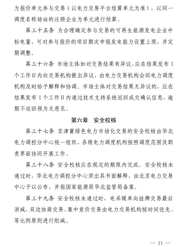 從華北監(jiān)管局獲悉:為推進(jìn)京津冀地區(qū)可再生能源市場(chǎng)化交易的有序開(kāi)展,進(jìn)一步規(guī)范可再生能源市場(chǎng)化交易工作,華北監(jiān)管局會(huì)同京津冀三。ㄊ校┱鞴懿块T(mén)及有關(guān)單位修訂了《京津冀綠色電力市場(chǎng)化交易規(guī)則》(以下簡(jiǎn)稱(chēng)《綠電交易規(guī)則》),并制定了《京津冀綠色電力市場(chǎng)化交易優(yōu)先調(diào)度實(shí)施細(xì)則(試行)》(以下簡(jiǎn)稱(chēng)《優(yōu)先