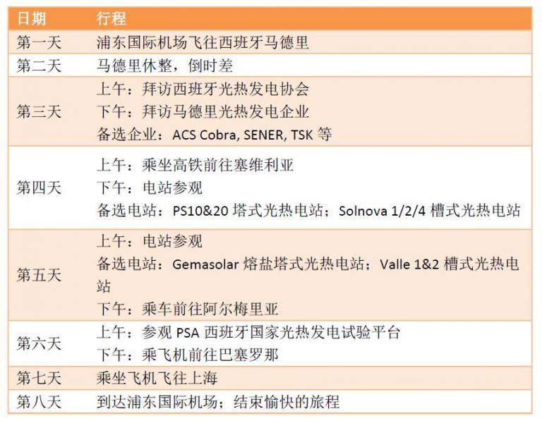 CSP Focus于2016年4月底將舉辦為期一周的光熱發(fā)電西班牙考察之旅,旨在幫助國內(nèi)行業(yè)人士有更多的機(jī)會(huì)實(shí)地學(xué)習(xí)電站經(jīng)驗(yàn)并與建造方深入交流學(xué)習(xí)。本次考察支持方西班牙光熱發(fā)電協(xié)會(huì)(Protermo)主席Luis Crespo先生表示非常歡迎中國CSP代表團(tuán)來訪,將組織當(dāng)?shù)睾诵捻?xiàng)目開發(fā)商/EPC及技術(shù)方與中方會(huì)面,促進(jìn)中外技術(shù)合作交流與碰撞,一同探討未來合作機(jī)會(huì)。此外,考察團(tuán)還將實(shí)地參觀商業(yè)化光熱電站,學(xué)習(xí)電站工程建設(shè)及運(yùn)行維護(hù)經(jīng)驗(yàn)。因辦理簽證、機(jī)票等事宜時(shí)間周期較長,本次考察團(tuán)將于3月中下旬停止招募,若有意向報(bào)名或咨詢?nèi)魏螁栴}請盡快聯(lián)系考察主辦方CSP Focus。 日程概覽>>> ![]() ![]() 往屆回顧>>> CSP Focus于2012年起每年組織國內(nèi)企業(yè)代表團(tuán)拜訪西班牙及美國各大光熱發(fā)電企業(yè),并參觀光熱電站;顒(dòng)吸引了國內(nèi)太陽能光熱發(fā)電產(chǎn)業(yè)的政府官員、項(xiàng)目開發(fā)商及EPC、投資方、系統(tǒng)集成商、設(shè)備供應(yīng)商等行業(yè)領(lǐng)袖出席并共同學(xué)習(xí)參觀國外先進(jìn)光熱發(fā)電技術(shù)。無論是商務(wù)洽談、電站參觀、行程安排,活動(dòng)均取得了良好的效果,增強(qiáng)了中國與西班牙相關(guān)業(yè)內(nèi)人士交流和合作的潛能,并成為國內(nèi)專業(yè)人士向國外學(xué)習(xí)交流光熱發(fā)電技術(shù)重要窗口。 ![]() 聯(lián)系方式: 孫先生 電話:021- 5830 0710轉(zhuǎn)8054 手機(jī):13636374053 郵箱:csp@szwgroup.com