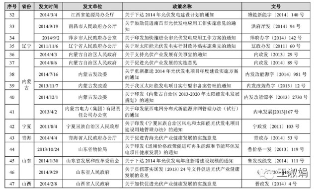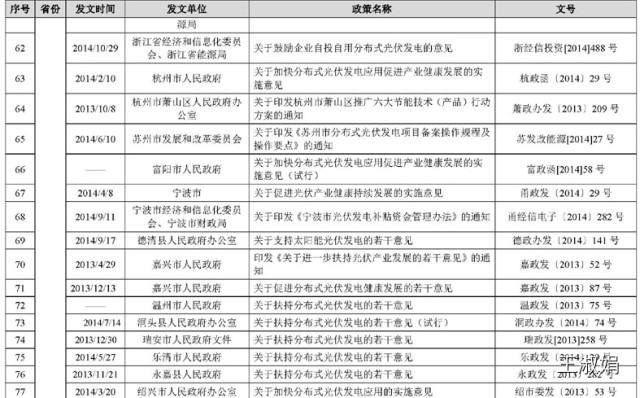“國八條”之后,各地均出臺(tái)了本地區(qū)落實(shí)“國八條”的具體政策。本文統(tǒng)計(jì)了截止11月份,82個(gè)各省及地方共出臺(tái)的光伏促進(jìn)、補(bǔ)貼、管理政策。剔除了之前頒布,但現(xiàn)在基本沒用的政策;剔除了只有名字或簡(jiǎn)介,但在網(wǎng)上找不到內(nèi)容的政策。大家可以根據(jù)這個(gè)名單,在網(wǎng)上找自己需要的省份、地方政府的政策。 “國八條”之后,各地方出臺(tái)的光伏鼓勵(lì)政策清單 ![]() ![]() ![]() ![]() ![]() ![]() |