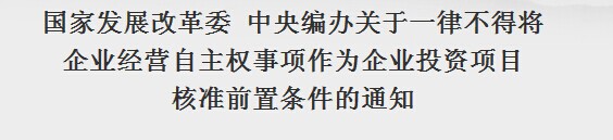 ![]() 發(fā)改投資[2014]2999號(hào) 根據(jù)《國(guó)務(wù)院辦公廳關(guān)于印發(fā)精簡(jiǎn)審批事項(xiàng)規(guī)范中介服務(wù)實(shí)行企業(yè)投資項(xiàng)目網(wǎng)上并聯(lián)核準(zhǔn)制度工作方案的通知》(國(guó)辦發(fā)〔2014〕59號(hào))要求,對(duì)于屬于企業(yè)經(jīng)營(yíng)自主權(quán)的事項(xiàng),一律不再作為企業(yè)投資項(xiàng)目核準(zhǔn)前置條件,并要求2014年底前公布取消,F(xiàn)將有關(guān)事項(xiàng)通知如下: 一、總體要求 全面貫徹落實(shí)黨的十八大和十八屆二中、三中、四中全會(huì)精神,按照使市場(chǎng)在資源配置中起決定性作用和更好發(fā)揮政府作用的要求,全面深化投資體制改革,按照“誰(shuí)投資、誰(shuí)決策、誰(shuí)受益、誰(shuí)承擔(dān)風(fēng)險(xiǎn)”的原則,確立企業(yè)投資主體地位。企業(yè)投資項(xiàng)目,除關(guān)系國(guó)家安全和生態(tài)安全、涉及全國(guó)重大生產(chǎn)力布局、戰(zhàn)略性資源開(kāi)發(fā)和重大公共利益等項(xiàng)目外,一律由企業(yè)依法依規(guī)自主決策。 企業(yè)投資建設(shè)實(shí)行核準(zhǔn)制的項(xiàng)目,政府僅從維護(hù)經(jīng)濟(jì)安全、合理開(kāi)發(fā)利用資源、保護(hù)生態(tài)環(huán)境、優(yōu)化重大布局、保障公共利益、防止出現(xiàn)壟斷等“外部性”方面進(jìn)行核準(zhǔn)。對(duì)外商投資項(xiàng)目,還要從市場(chǎng)準(zhǔn)入、資金項(xiàng)目管理等方面進(jìn)行核準(zhǔn)。項(xiàng)目的市場(chǎng)前景、經(jīng)濟(jì)效益、資金來(lái)源和產(chǎn)品技術(shù)方案等“內(nèi)部性”條件,均由企業(yè)自主決策、自擔(dān)風(fēng)險(xiǎn),項(xiàng)目核準(zhǔn)機(jī)關(guān)不得干預(yù)企業(yè)投資自主權(quán),不得將屬于企業(yè)經(jīng)營(yíng)自主權(quán)的事項(xiàng)作為企業(yè)投資項(xiàng)目核準(zhǔn)的前置條件。 二、取消范圍 下列事項(xiàng)一律不再作為企業(yè)投資項(xiàng)目核準(zhǔn)的前置條件: (一)銀行貸款承諾; (二)融資意向書; (三)資金信用證明; 。ㄋ模┕蓶|出資承諾; 。ㄎ澹┢渌Y金落實(shí)情況證明材料; 。┛尚行匝芯繄(bào)告審查意見(jiàn); (七)規(guī)劃設(shè)計(jì)方案審查意見(jiàn); 。ò耍╇娋W(wǎng)接入意見(jiàn); 。ň牛┙尤胂到y(tǒng)設(shè)計(jì)評(píng)審意見(jiàn); 。ㄊ╄F路專用線接軌意見(jiàn); 。ㄊ唬┰牧线\(yùn)輸協(xié)議; 。ㄊ┤剂线\(yùn)輸協(xié)議; (十三)供水協(xié)議; 。ㄊ模┡c相關(guān)企業(yè)簽署的副產(chǎn)品資源綜合利用意向協(xié)議; 。ㄊ澹┡c相關(guān)供應(yīng)商簽署的原材料供應(yīng)協(xié)議等; 。ㄊ┡c合作方簽署的合作意向書、協(xié)議、框架協(xié)議(中外合資、合作項(xiàng)目除外); 。ㄊ撸┩ㄟ^(guò)企業(yè)間協(xié)商和市場(chǎng)調(diào)節(jié)能夠解決的協(xié)議、承諾、合同等事項(xiàng); 。ㄊ耍┢渌麑儆谄髽I(yè)經(jīng)營(yíng)自主決策范圍的事項(xiàng)。 三、工作要求 (一)按照“法無(wú)授權(quán)不可為”的原則,除法律、行政法規(guī)明確規(guī)定作為項(xiàng)目核準(zhǔn)前置條件的外,項(xiàng)目核準(zhǔn)機(jī)關(guān)一律不得將其他事項(xiàng)作為項(xiàng)目核準(zhǔn)的前置條件。 。ǘ╉(xiàng)目核準(zhǔn)機(jī)關(guān)不得以任何形式和任何理由,將屬于企業(yè)經(jīng)營(yíng)自主權(quán)的事項(xiàng)及內(nèi)容作為項(xiàng)目申請(qǐng)報(bào)告的前置條件。企業(yè)在項(xiàng)目申報(bào)過(guò)程中,有權(quán)拒絕將屬于企業(yè)經(jīng)營(yíng)自主權(quán)的事項(xiàng)作為項(xiàng)目核準(zhǔn)前置條件的要求。 。ㄈ╉(xiàng)目申請(qǐng)報(bào)告中屬于企業(yè)經(jīng)營(yíng)自主權(quán)的相關(guān)內(nèi)容,僅供項(xiàng)目核準(zhǔn)機(jī)關(guān)在核準(zhǔn)過(guò)程中了解,項(xiàng)目核準(zhǔn)機(jī)關(guān)不得以“內(nèi)部性”條件否決企業(yè)的項(xiàng)目申請(qǐng)。 。ㄋ模┫嚓P(guān)制度規(guī)定、通知及辦事指南等將屬于企業(yè)經(jīng)營(yíng)自主權(quán)事項(xiàng)規(guī)定為項(xiàng)目核準(zhǔn)前置條件的,相關(guān)條款一律無(wú)效,制定部門應(yīng)及時(shí)清理調(diào)整。同時(shí),新制定的制度規(guī)定、通知及辦事指南等,一律不得將屬于企業(yè)經(jīng)營(yíng)自主權(quán)事項(xiàng)規(guī)定為項(xiàng)目核準(zhǔn)的前置條件,否則,相關(guān)條款一律無(wú)效。 四、上述規(guī)定自本通知發(fā)布之日起施行。 國(guó)家發(fā)展改革委
