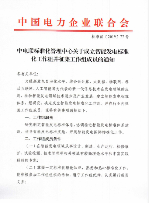 太陽能發(fā)電網訊(編輯/秋石):日前,中國電力企業(yè)聯(lián)合會標準化管理中心下發(fā)《中電聯(lián)標準化管理中心關于成立智能發(fā)電標準化工作組并征集工作組成員的通知》,決定成立智能發(fā)電標準化工作組,并在行業(yè)內公開征集工作組成員。 通知表示,該標準化工作組的成立,是為了提高發(fā)電的自動化水平,推動云計算、大數據、物聯(lián)網、移動互聯(lián)網、人工智能等新一代信息技術在發(fā)電領域的應用與智能發(fā)電技術進步及產業(yè)發(fā)展。工作組的主要職責包括,研究制定智能發(fā)電標準體系,協(xié)調推進智能發(fā)電標準體系建設,指導智能發(fā)電標準實施,開展智能發(fā)電國際標準化工作。 通知全文如下: ![]() ![]() ![]() ![]() ![]() |