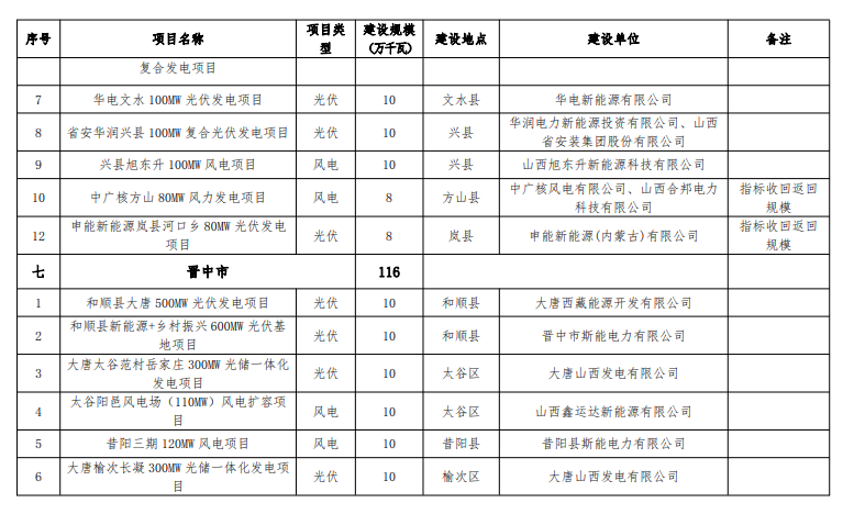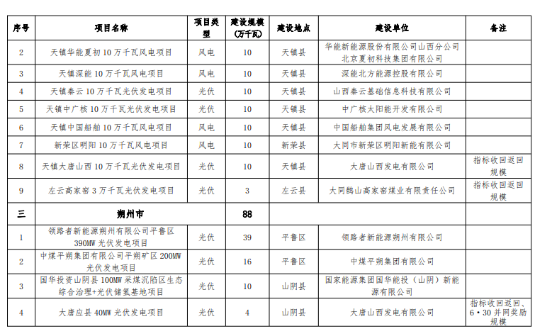 根據(jù)《2022年風電、光伏發(fā)電開發(fā)建設競爭性配置工作方案》,經各市初選上報,山西省能源局組織了2022年競爭性配置風電、光伏發(fā)電項目評審,優(yōu)選出“年度基本規(guī)!北U闲圆⒕W項目83個、規(guī)模922萬千瓦,現(xiàn)將結果予以公示。各市確定的“指標收回返回規(guī)!薄ⅰ6*30并網獎勵規(guī)!表椖15個、規(guī)模124萬千瓦