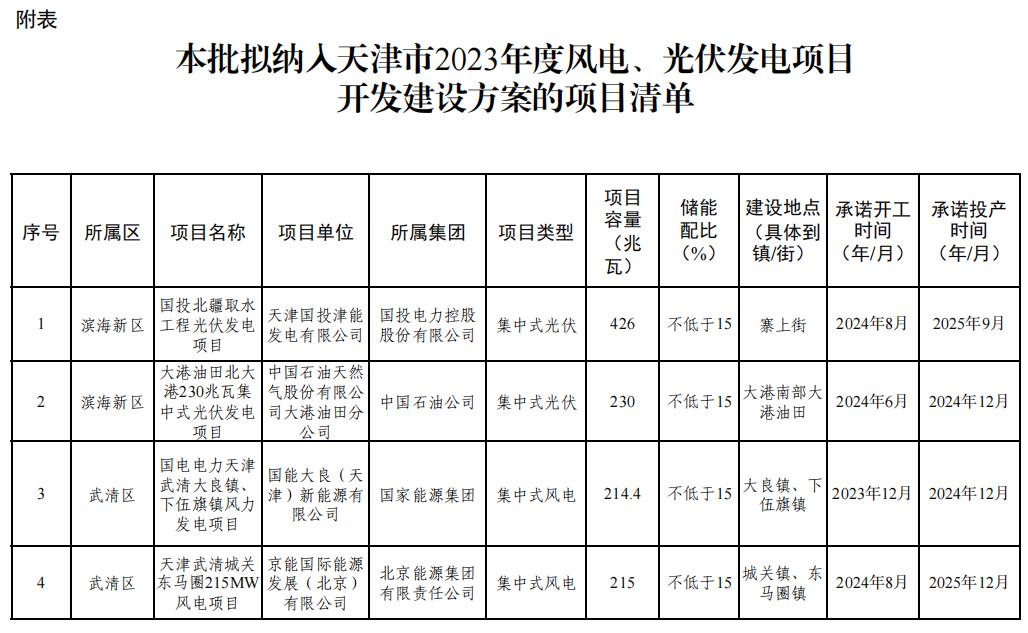 9月7日,天津市發(fā)改委公示擬納入天津市2023年風(fēng)電、光伏發(fā)電項(xiàng)目開(kāi)發(fā)建設(shè)方案的項(xiàng)目清單,包含3個(gè)集中式光伏項(xiàng)目、7個(gè)集中式風(fēng)電項(xiàng)目,總裝機(jī)規(guī)模2384.1MW,其中光伏856MW、風(fēng)電1528.1MW。 關(guān)于擬納入天津市2023年風(fēng)電、光伏發(fā)電項(xiàng)目開(kāi)發(fā)建設(shè)方案項(xiàng)目的公示