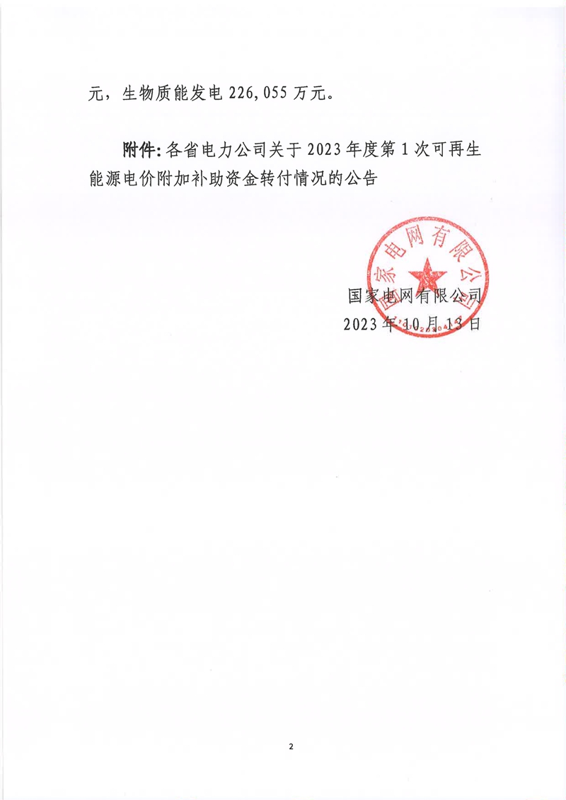 10月19日,國(guó)家電網(wǎng)發(fā)布關(guān)于2023年度第1次可再生能源電價(jià)附加補(bǔ)助資金轉(zhuǎn)付情況的公告,公告顯示,截至2023年9月末,財(cái)政部下達(dá)公司可再生能源電價(jià)附加補(bǔ)助資金年度預(yù)算5000000萬(wàn)元,其中風(fēng)力發(fā)電2251413萬(wàn)元,太陽(yáng)能發(fā)電2522532萬(wàn)元,生物質(zhì)能發(fā)電226055萬(wàn)元。 公告稱,公司嚴(yán)格按照財(cái)政部《關(guān)于調(diào)劑2023年可再生能源電價(jià)附加補(bǔ)助資金預(yù)算的通知》(財(cái)資〔2023〕93號(hào))中明確的補(bǔ)貼資金撥付原則和順序,在收到財(cái)政部撥付款項(xiàng)后,對(duì)納入補(bǔ)貼目錄或清單且滿足結(jié)算條件的各類項(xiàng)目進(jìn)行及時(shí)、足額轉(zhuǎn)付。具體情況見(jiàn)各省電力公司公告。 ![]() ![]() |