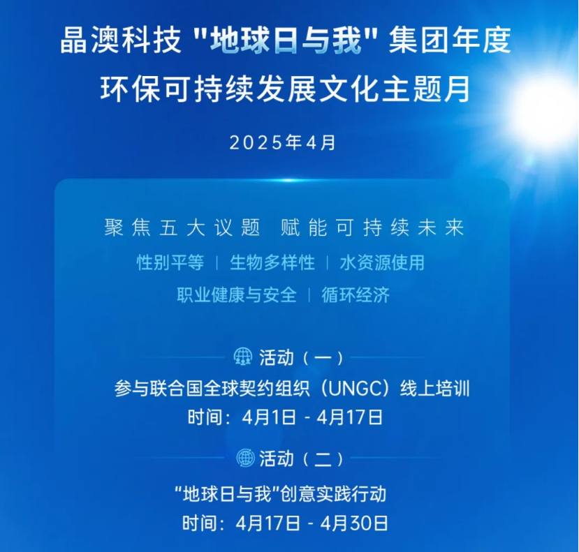 在第55個(gè)世界地球日(4月22日)即將到來(lái)之際,晶澳科技正式啟動(dòng)“地球日與我”年度環(huán)?沙掷m(xù)發(fā)展文化主題月活動(dòng),通過(guò)四月份為期一個(gè)月的多元化行動(dòng),將企業(yè)可持續(xù)戰(zhàn)略轉(zhuǎn)化為可感知的全球行動(dòng),進(jìn)一步推動(dòng)G2G理念的實(shí)踐深化。![]() 作為率先加入聯(lián)合國(guó)全球契約組織(UNGC),及該組織發(fā)起的“加速前進(jìn)”(Forward Faster)倡議、“氣候雄心加速器”(CAA)等項(xiàng)目的企業(yè),本次活動(dòng)密切圍繞聯(lián)合國(guó)可持續(xù)發(fā)展目標(biāo)中的14項(xiàng),并聚焦與晶澳科技業(yè)務(wù)緊密關(guān)聯(lián)的五大議題—— 01性別平等:推動(dòng)職場(chǎng)多元化與包容性文化,賦能女性職業(yè)發(fā)展; 02生物多樣性:探索光伏與生態(tài)保護(hù)的協(xié)同路徑,助力自然棲息地修復(fù); 03水資源使用:優(yōu)化生產(chǎn)用水效率,推廣節(jié)水技術(shù)與循環(huán)利用; 04職業(yè)健康與安全:強(qiáng)化全員安全意識(shí),構(gòu)建零傷害工作環(huán)境; 05循環(huán)經(jīng)濟(jì):加速光伏循環(huán)性研發(fā)與生產(chǎn),探索全生命周期綠色管理。 本次活動(dòng)中,晶澳科技借助UNGC的培訓(xùn)資源平臺(tái),將面向全球員工開(kāi)展可持續(xù)發(fā)展主題線上培訓(xùn),以此全面提升員工對(duì)國(guó)內(nèi)外可持續(xù)發(fā)展現(xiàn)狀和趨勢(shì)的理解,為可持續(xù)實(shí)踐與業(yè)務(wù)深度融合拓展思維框架,更好地探索氣候創(chuàng)新與行動(dòng)實(shí)踐。與此同時(shí),晶澳科技還將結(jié)合地域特色與業(yè)務(wù)場(chǎng)景,圍繞“地球日與我”五大議題,自主策劃并實(shí)施可持續(xù)發(fā)展主題活動(dòng)。 晶澳科技EHS負(fù)責(zé)人表示:“從聯(lián)合國(guó)標(biāo)準(zhǔn)學(xué)習(xí)到本土化創(chuàng)新實(shí)踐,兩大活動(dòng)層層遞進(jìn),既強(qiáng)化了員工的全球視野,也激活了基層團(tuán)隊(duì)的創(chuàng)造力。我們期待通過(guò)這一系列行動(dòng),將可持續(xù)發(fā)展從戰(zhàn)略目標(biāo)轉(zhuǎn)化為可感知、可衡量的日常實(shí)踐! 秉承“Green to Green,Green to Grow,Green to Great(共建綠色循環(huán),共謀綠色發(fā)展,共創(chuàng)綠色未來(lái))”的可持續(xù)發(fā)展理念,晶澳科技始終以高頻次、高質(zhì)量的切實(shí)行動(dòng),努力推動(dòng)全球可持續(xù)發(fā)展。未來(lái),晶澳科技也將繼續(xù)緊密?chē)@巴黎協(xié)定1.5℃溫控目標(biāo)和聯(lián)合國(guó)17個(gè)可持續(xù)發(fā)展目標(biāo)開(kāi)展更多活動(dòng),以自身行動(dòng)為基礎(chǔ),攜手整個(gè)光伏價(jià)值鏈走向綠色發(fā)展之路。 |