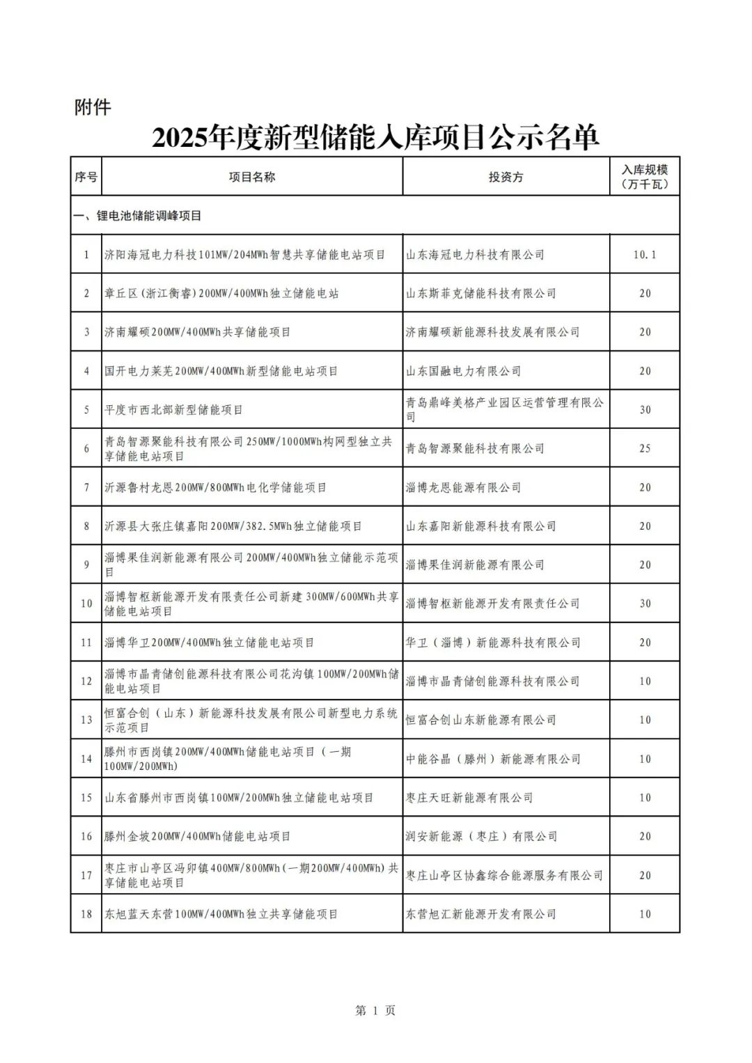 7月9日,山東省能源局發(fā)布2025年度新型儲(chǔ)能入庫(kù)項(xiàng)目公示,經(jīng)各市推薦和專(zhuān)家評(píng)審,擬將81個(gè)鋰電池儲(chǔ)能調(diào)峰項(xiàng)目、2個(gè)壓縮空氣儲(chǔ)能調(diào)峰項(xiàng)目、1個(gè)液流電池儲(chǔ)能調(diào)峰項(xiàng)目、7個(gè)調(diào)頻儲(chǔ)能項(xiàng)目、5個(gè)其他新型儲(chǔ)能調(diào)峰項(xiàng)目列為2025年度新型儲(chǔ)能入庫(kù)項(xiàng)目。 公示時(shí)間為2025年7月9日至7月15日。 ![]() ![]() ![]() ![]() ![]() |