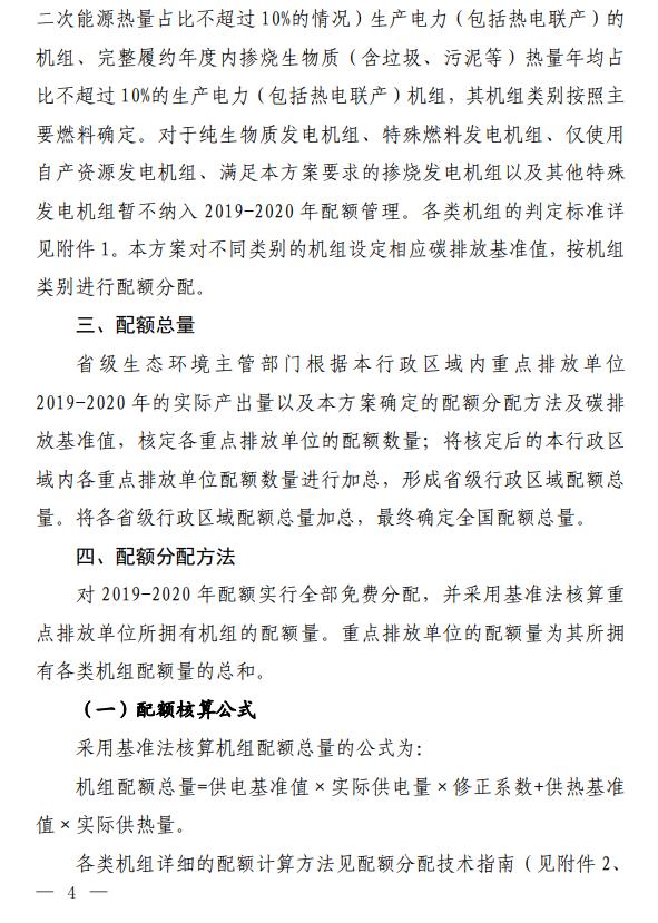 12月30日,生態(tài)環(huán)境部發(fā)布關(guān)于印發(fā)《2019-2020年全國碳排放權(quán)交易配額總量設(shè)定與分配實施方案(發(fā)電行業(yè))》《納入2019-2020年全國碳排放權(quán)交易配額管理的重點排放單位名單》并做好發(fā)電行業(yè)配額預(yù)分配工作的通知。根據(jù)通知,發(fā)電行業(yè)2019-2020碳排放權(quán)分配實施方案確定。對于使用非自產(chǎn)可燃性氣體等燃