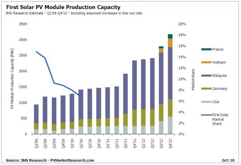 根據(jù)IMS Research 的最新研究,明年全球公用事業(yè)規(guī)模光伏市場將急劇增長,領(lǐng)先光伏行業(yè)其他領(lǐng)域達5倍之多。對于2011年這種高需求的預(yù)測支持了美國薄膜太陽能電池組件生產(chǎn)商 ——第一太陽能公司(First Solar)最近作出的一項決定,該公司決定將顯著增加其未來2年產(chǎn)能擴張計劃。除前期宣布的在法國、德國和馬來西亞的擴張計劃,他們2012年還將在美國和越南增加2家有四條生產(chǎn)線的工廠。這些擴張顯示,以目前的產(chǎn)能利用率計算,這家全球領(lǐng)先的薄膜電池供應(yīng)商到2012年底的年產(chǎn)能將達到2700兆瓦。鑒于以往其不斷改善生產(chǎn)能力的歷史,IMS Research預(yù)測屆時該公司產(chǎn)能將能達到3000兆瓦。 第一太陽能公司的產(chǎn)能擴張計劃不太可能被她的許多競爭對手效仿,由于德國市場開始振蕩下行,很多競爭廠商將可能面臨需求放緩;仡2009年初,當時許多國家的其它行業(yè)需求減少,市場停滯,第一太陽能公司卻逆勢擴張,出貨量翻了不止一番,市場占有率(按兆瓦計)從2008年的6.9%提高到10.7%。然而,當今年晶體硅電池競爭對手以驚人的速度不斷增加產(chǎn)能時,第一太陽能公司全年卻維持其產(chǎn)能,僅僅增加了一條額外的生產(chǎn)線。根據(jù)IMS Research的最新預(yù)測,2010年全球光伏安裝總量將翻番,而第一太陽能公司的出貨量卻將只增長25%,這導(dǎo)致其市場份額下降至8%左右。 光伏研究分析師Sam Wilkinson指出:“由于德國小型商用市場很可能減少兆瓦級項目,需求有可能下降,該行業(yè)很多人士都表示無法確定對2011年的行情;第一太陽能公司卻預(yù)期市場對其產(chǎn)品的需求將增加,他們需要加速擴張產(chǎn)能!薄捌駷橹,德國市場主要青睞屋頂安裝市場,當無法完全受益于蓬勃發(fā)展的德國市場時,歐洲的大型光伏電廠及第一太陽能公司自己在北美龐大的公用事業(yè)級光伏安裝計劃將產(chǎn)生強勁需求,”Wilkinson繼續(xù)評論說!癐MSResearch預(yù)測,2011年第一太陽能公司在其主要市場——公用事業(yè)規(guī)模光伏市場的安裝量將顯著增長,增速將是其他市場的5倍還多! Wilkinson補充道。 假如需求仍然很高,足以確保其增加的生產(chǎn)線較高的使用率,該產(chǎn)能擴張計劃將能幫助第一太陽能公司降低成本,進一步領(lǐng)先于競爭對手。在降低組件成本方面已是市場領(lǐng)先者的這家美國供應(yīng)商宣布,今年第二季度公司的成本已下降至創(chuàng)紀錄的每瓦74美分($0.74/W)。由于需求高漲和供應(yīng)緊張,晶體硅光伏組件價格維持高位,第一太陽能公司有望在2011年奪回市場份額。