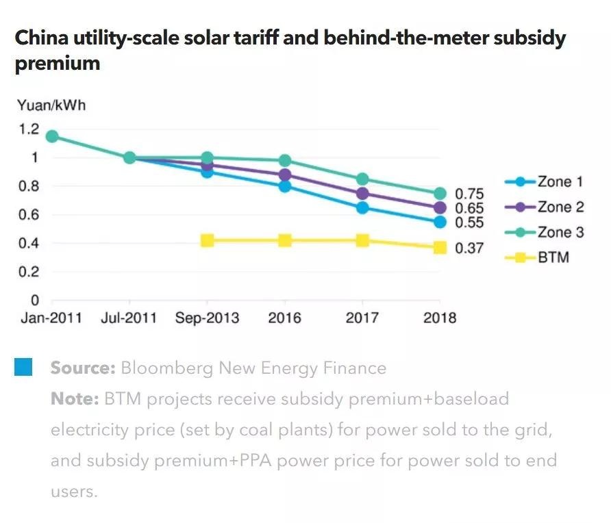 中國(guó)國(guó)家發(fā)改委在2017年12月21日宣布,從2018年開(kāi)始,地面光伏電站的標(biāo)桿電價(jià)下調(diào)12%-15%,“自發(fā)自用,余量上網(wǎng)”光伏容量的補(bǔ)貼標(biāo)準(zhǔn)下調(diào)12%。彭博新能源財(cái)經(jīng)預(yù)計(jì),這種調(diào)整將給地面光伏電站帶來(lái)更多壓力,但同時(shí)將造福分布式光伏發(fā)電“自發(fā)自用,余量上網(wǎng)”模式的發(fā)展! 〉孛婀夥娬卷(xiàng)目的補(bǔ)