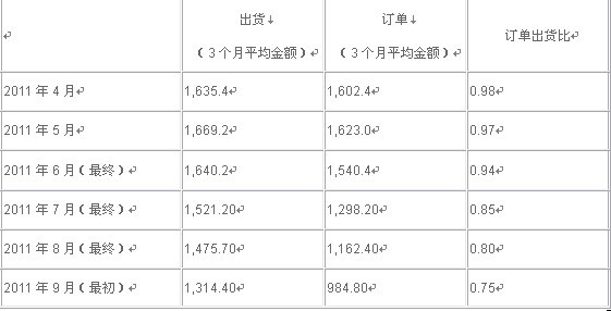 國際半導(dǎo)體設(shè)備材料協(xié)會(SEMI)于10月20日公布,2011年9月北美半導(dǎo)體設(shè)備制造商接獲訂單9.848億美元,訂單出貨比(Book-to-Bill ratio)初估為0,75, 為連續(xù)第12個月低于1; 0.75意味著當(dāng)月每出貨100美元的產(chǎn)品僅能接獲價值75美元的新訂單。這是北美半導(dǎo)體設(shè)備制造商BB值連續(xù)第5個月呈現(xiàn)下跌。