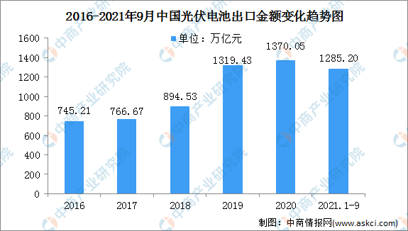 市場現(xiàn)狀 1、光伏電池產(chǎn)量 數(shù)據(jù)顯示,我國光伏電池產(chǎn)量由2016年7681.0萬千瓦增至2020年15728.6萬千瓦。2021年1-9月我國光伏電池產(chǎn)量達16532.7萬千瓦,同比增長51.8%。 ![]() 數(shù)據(jù)來源:國家統(tǒng)計局、中商產(chǎn)業(yè)研究院整理 2、光伏電池出口情況 數(shù)據(jù)顯示,我國光伏電池出口量由2016年7.72億個增至2020年27.22億個。2021年1-9月份出口量達23.97億個,同比增長13.7%。出口金額由2016年745.21萬億元增至2020年1370.05萬億元,2021年1-9月出口金額達1285.2萬億元,同比增長26.6%。 ![]() 數(shù)據(jù)來源:中國海關(guān)、中商產(chǎn)業(yè)研究院整理 ![]() 數(shù)據(jù)來源:中國海關(guān)、中商產(chǎn)業(yè)研究院整理 發(fā)展前景 1、國家政策支持行業(yè)發(fā)展 未來十年,我國能源結(jié)構(gòu)清潔化、低碳化轉(zhuǎn)型的力度將進一步加大,我國推出多項政策,大力支持太陽能光伏產(chǎn)業(yè)建設(shè)。為行業(yè)快速發(fā)展提供了有力的政策支持,營造了寬松有利的發(fā)展環(huán)境,對指導行業(yè)發(fā)展方向、引導市場資源傾斜、提升行業(yè)關(guān)注水平起到了重要作用。 2、平價上網(wǎng)帶動行業(yè)升級 隨著技術(shù)進步和市場需求的雙重驅(qū)動,我國光伏產(chǎn)品的生產(chǎn)成本和發(fā)電成本也在不斷降低。目前光伏電池、組件如大硅片、PERC+及雙面等技術(shù)的發(fā)展,將有效提升組件產(chǎn)品功率及發(fā)電效率,跟蹤支架應(yīng)用、運維能力的持續(xù)提高都將進一步降低光伏發(fā)電系統(tǒng)成本。同時在政策上,合理性的平價項目數(shù)量規(guī)劃、優(yōu)化項目布局保證消納、提升技術(shù)管理能力和增強電力系統(tǒng)靈活性都將進一步推動我國光伏電池行業(yè)可持續(xù)發(fā)展。 3、“一帶一路”戰(zhàn)略助力行業(yè)發(fā)展 一帶一路國家發(fā)展戰(zhàn)略將進一步促進全球太陽能光伏發(fā)電市場繁榮,吸引我國光伏組件、晶體硅電池等向海外市場拓展,帶動光伏電池行業(yè)快速發(fā)展。