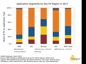 圖一、主要光伏區(qū)域市場2017年的應用分類