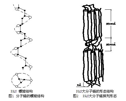 這兩個(gè)同樣的光子又去激勵(lì)其它激發(fā)原子發(fā)生受激躍遷,因而又獲得4個(gè)同樣的光子。如此反應(yīng)下去,在很短的時(shí)間內(nèi),輻射出來大量同性能的光子,這個(gè)過程稱為“雪崩”。雪崩就是受激輻射光的放大過程。受激輻射光是相干光,相干光有疊加效應(yīng),因此合成光的振幅加大,表現(xiàn)為光的高亮度性。物質(zhì)種類的不同激發(fā)壽命與躍遷機(jī)率不同。PAN纖維具有強(qiáng)極性的基團(tuán)氰基,在同一大分子鏈上,由于氰基的極性相同,彼此排斥;斥力使氰基沿炭化學(xué)鍵連接的主鏈偏轉(zhuǎn)一定角度,形成螺旋排列。PAN的一級(jí)單元就是這種對(duì)稱管棒狀的分子鏈。直徑約0.6nm,長度10~100nm。在PAN分子鏈上有不對(duì)稱的碳原子,是螺旋有左旋和右旋之分(圖1)。大分子鏈在分子吸引力的作用下,數(shù)個(gè)或數(shù)十個(gè)分子鏈平行緊密排列,形成有序的晶區(qū);大分子無序堆積,形成非晶區(qū)(圖2)。原子躍遷放出的光子,在這個(gè)管棒狀的分子鏈中產(chǎn)生自激震蕩。達(dá)到一種光能放大的作用。另外,根據(jù)檢測(cè),炭-炭復(fù)合材料含有約10%的亞穩(wěn)態(tài)原子C14,因亞穩(wěn)態(tài)原子能為粒子數(shù)反轉(zhuǎn)提供了條件。亞穩(wěn)態(tài)原子是產(chǎn)生激光的工作物質(zhì)?傊,PAN炭-炭復(fù)合材料在通電發(fā)熱的時(shí)候,光子在大分子鏈中產(chǎn)生自激震蕩;由于材料中富含亞穩(wěn)態(tài)的C14,使該材料具有LASER( Light Amplification by Stimulated Emission of Radiation.)效應(yīng)。