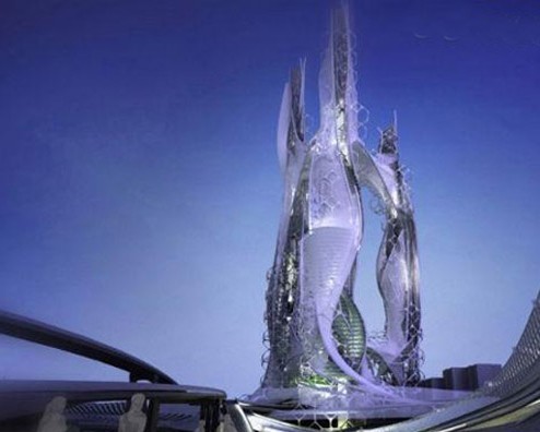 由瓦漢·米薩坎(VahanMisakyan)設(shè)計(jì)的“百變摩天大樓”(EvolvingSkyscraper),因?qū)α鲃?dòng)外形做出了非同尋常的排列,令其看上去像是來自于另一個(gè)星球:它肯定與地球上的所有建筑不一樣。三個(gè)彎曲的波狀塔樓與頂端的結(jié)構(gòu)有機(jī)地結(jié)合在一起,而適于居住的橋形結(jié)構(gòu)貫穿其中。這座摩天大樓設(shè)計(jì)用于各種各樣的用途,比如居住、辦公和休閑娛樂,表面覆蓋著“智能皮膚”,不僅可以吸收太陽能為整棟大樓供電,還可以收集雨水,控制進(jìn)入樓內(nèi)的光線。