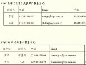 CQC光伏業(yè)務部門的聯(lián)系方式請見下圖: