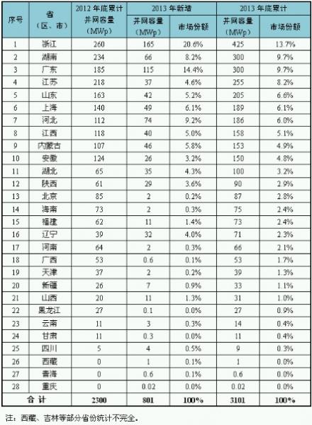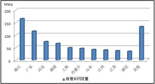 分布式光伏。主要分布在電力負(fù)荷比較集中的中東部地區(qū),華東和華北地區(qū)累計并網(wǎng)容量分別為145萬和49萬千瓦,占全國分布式光伏的60%。排名前三的省份分別為浙江、廣東和河北省,并網(wǎng)容量分別達(dá)到16萬千瓦、11萬千瓦和7萬千瓦,三省之和占全國分布式光伏并網(wǎng)總?cè)萘康?0%以上。各。ㄗ灾螀^(qū)、直轄市)分布式光伏情況見附表2。