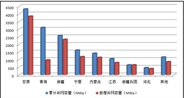 圖1 2013年底主要省(區(qū))并網(wǎng)光伏電站情況