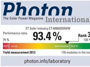 2014年5月8日--中盛新能源有限公司(下稱(chēng)“中盛新能源”)旗下高品質(zhì)光伏組件在PHOTON實(shí)驗(yàn)室光伏組件年度戶(hù)外發(fā)電測(cè)試中再獲卓越表現(xiàn),ET-M660250組件以93.4%的Performance Ratio榮登2013年度測(cè)試TOP3,并被冠以PHOTON實(shí)驗(yàn)室TOP排名標(biāo)識(shí)。