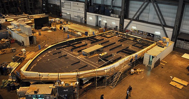 在建造這艘船的Knierim船塢,船體有了雛形。