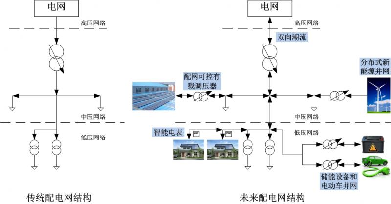那么,未來(lái)的智能配電網(wǎng)與傳統(tǒng)的配電網(wǎng)具體有何不同?智能電網(wǎng)引入了哪些新技術(shù)?下圖提供了一個(gè)清晰的比較說(shuō)明:
