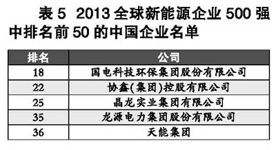 2013年,新能源領(lǐng)域的貿(mào)易爭(zhēng)端有所緩和,新興市場(chǎng)國(guó)家對(duì)新能源產(chǎn)業(yè)的政策扶持力度持續(xù)加碼,歐洲地區(qū)的產(chǎn)業(yè)政策出現(xiàn)調(diào)整,產(chǎn)業(yè)的發(fā)展在不同的地區(qū)呈現(xiàn)漲跌不一的現(xiàn)象。受此影響,2014“全球新能源企業(yè)500強(qiáng)”的榜單發(fā)生了較大的變化,呈現(xiàn)出以下特點(diǎn):