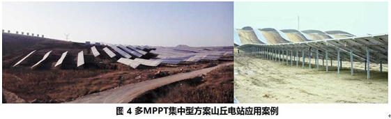 山丘電站是近期出現(xiàn)的光伏應(yīng)用形式,由于同樣是容量大且并入輸電網(wǎng),可以歸入地面電站一類。但是由于地勢(shì)起伏,導(dǎo)致組件朝向不能全部一致,且可能存在地形引起的光照遮擋,在設(shè)計(jì)選型時(shí),需要在荒漠地面電站集中型逆變器方案的基礎(chǔ)上,增加多MPPT的功能要求。