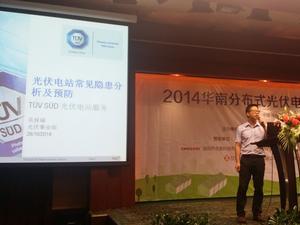 近日,由光伏系統(tǒng)網主辦的“2014華南分布式光伏電站暨逆變器論壇”在深圳海景奧思廷酒店舉行,來自全國各地100多家企業(yè)參加了此次論壇。會議期間,TUV 南德意志集團(以下簡稱 TUV SUD)光伏事業(yè)部技術經理吳候福先生就光伏電站常見隱患問題及預防等方面進行了深入的講解,并在互動環(huán)