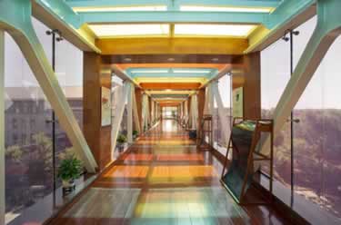 漢能BIPV項(xiàng)目中,連廊采光頂采用彩色薄膜發(fā)電組件 漢能同時發(fā)布了透光型、彩色型、中空型、超大型、異型、輕質(zhì)、柔性等多種類型BIPV組件產(chǎn)品,并已通過管理體系、建材產(chǎn)品、太陽能電池產(chǎn)品等多項(xiàng)權(quán)威認(rèn)證。漢能BIPV組件還具有弱光性好、高溫性能好、顏色形狀可訂制、透光均勻、柔性可彎曲等優(yōu)勢,可在符合建筑安全的要求下,作為高科技建筑材料提供電力,同時滿足各類建筑藝術(shù)效果和整體協(xié)調(diào)性等審美需求。