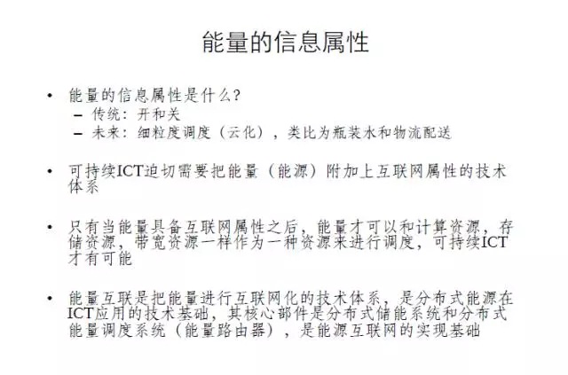 能量的信息化和分布式儲(chǔ)能是能源互聯(lián)網(wǎng)的實(shí)現(xiàn)基礎(chǔ) 能源互聯(lián)網(wǎng)的核心思想與目標(biāo)可以概括為能量分布式生產(chǎn)、本地化供給以及能量的互聯(lián)互通。以風(fēng)能、太陽能、潮汐能等可再生能源為代表的分布式生產(chǎn)的能量具有先天的不確定性或隨機(jī)性。這種能量不確定性一方面將嚴(yán)重影響能量供給與共享的安全性,穩(wěn)定性與可靠性;另一方面,能量互聯(lián)網(wǎng)中的能量互聯(lián)共享是像互聯(lián)網(wǎng)中信息互聯(lián)共享,即,用戶側(cè)驅(qū)動(dòng)的能量互聯(lián)共享。因此,由于分布式能量源的不確定性與用戶需求的隨機(jī)性,從任意時(shí)刻看,能量供給和需求之間自發(fā)的平衡顯然是不可能,分布式生產(chǎn)的能量將無秩序的從低熵的能量源流向高熵負(fù)載。