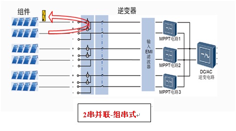 國內(nèi)主流的組串式方案采用2串組件并聯(lián),即使有一串發(fā)生短路故障,反灌電流最大也不會超過10A,均在直流線纜和光伏組件承受范圍以內(nèi)(42mm直流電纜載流能力大于30A,組件耐受反灌電流15A),安全性較高。