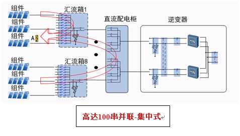 光伏電站的能量來源為太陽能光伏組件,組件電流輸出使用小截面直流線纜對于組串式和集中式來說都必不可少。對組串式來說,一般采取2~3串組件并聯(lián)。而對于集中式方案來說,一般采取16路并聯(lián)后,再經(jīng)直流匯流箱8路并聯(lián),最終并聯(lián)的組件數(shù)可能達到100串組件。那么兩者的安全性方面的對比如下: